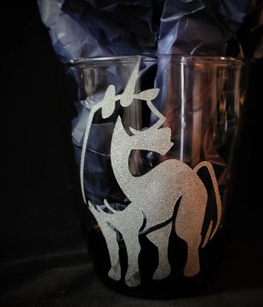 Pair of hand etched Raven Glasses.